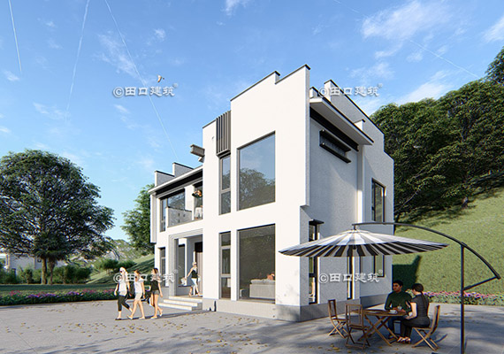 占地面積 288.4㎡ 土建造價 120.0萬 白色現代別墅